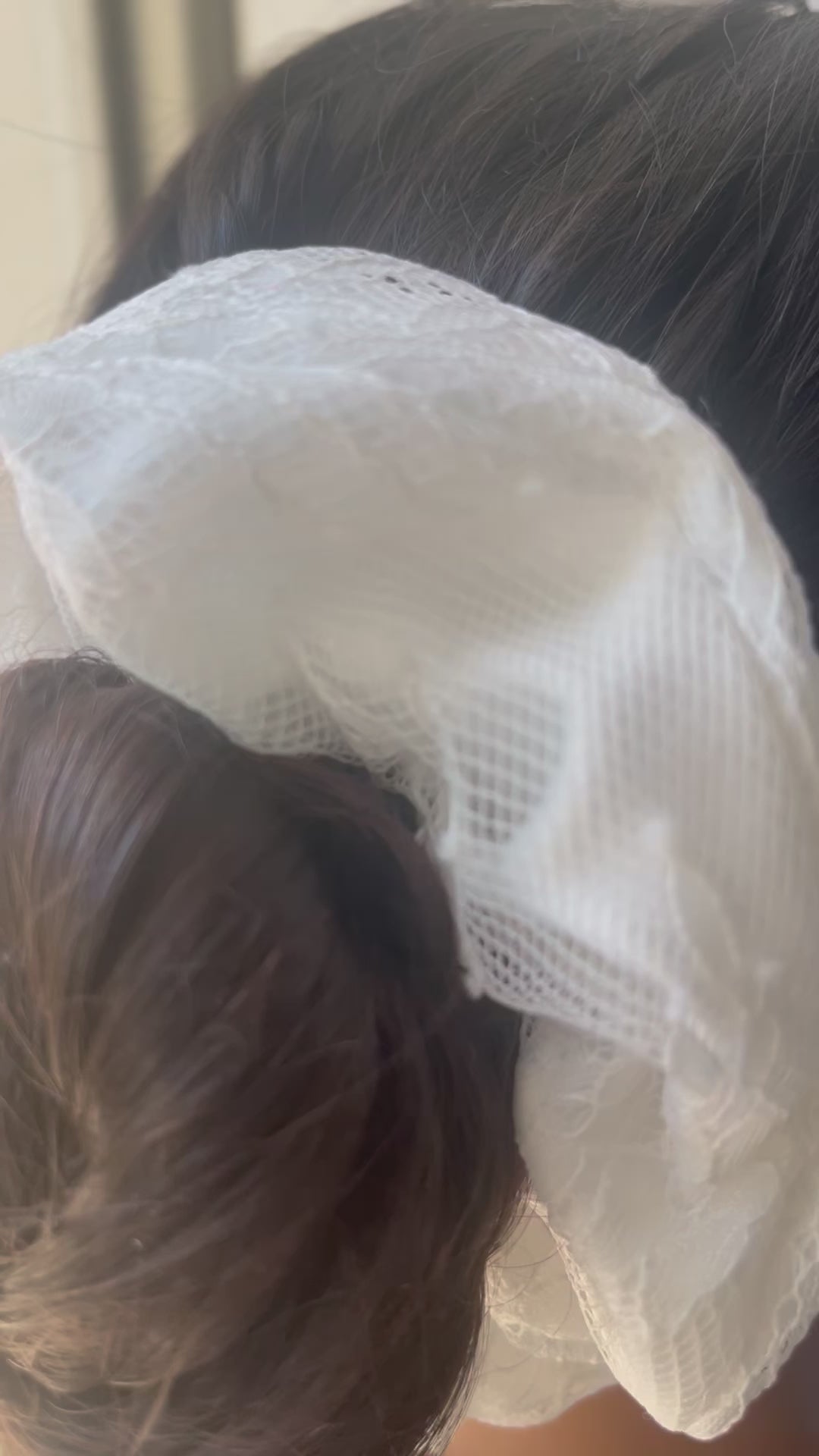 Ces gros chouchous en dentelle ont été pensés pour les mariées, les demoiselles d’honneur ou toutes celles qui souhaitent une touche précieuse dans leur coiffure. Légers et travaillés, ils subliment un chignon bas, une demi-attache ou une coiffure floue romantique. Le détail parfait pour une coiffure tout en finesse.